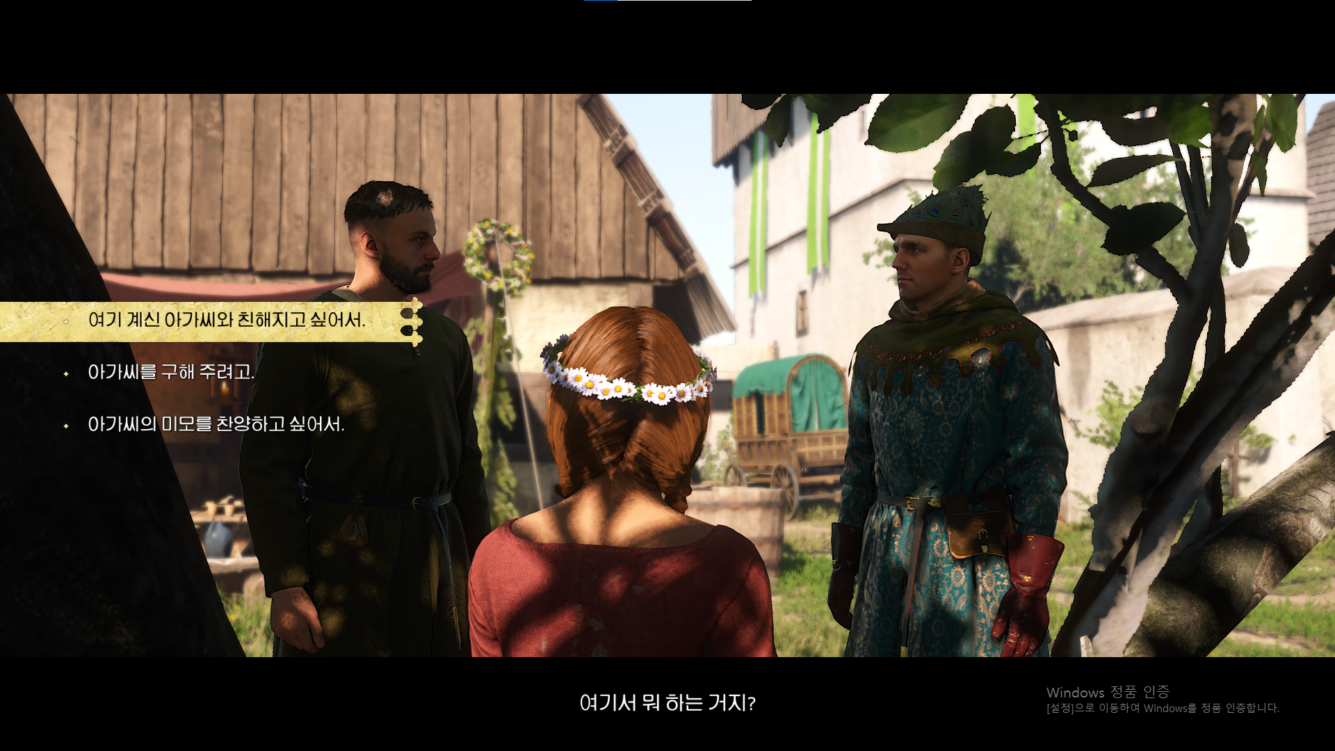 먼저 칼에서 풀려나면 오른쪽에 바라라는 여자가 헨리를 부릅니다. 그녀와 대화하다보면 수괭이라는 사람의 정보를 얻을 수 있는데