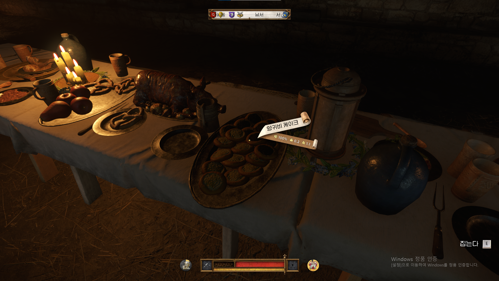 참고로 제가 서있는 곳 앞에 도적이 거의 확정적으로 뜨는 것 같습니다. 사냥용 칼으로는 갑옷입은 병사를 잡는게 거의 불가능하기 때문에 피해가시면 됩니다.