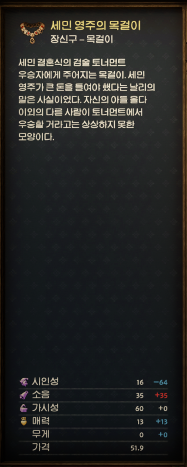 세민 영주에게 이기면 세민 영주의 목걸이를 받게 됩니다.