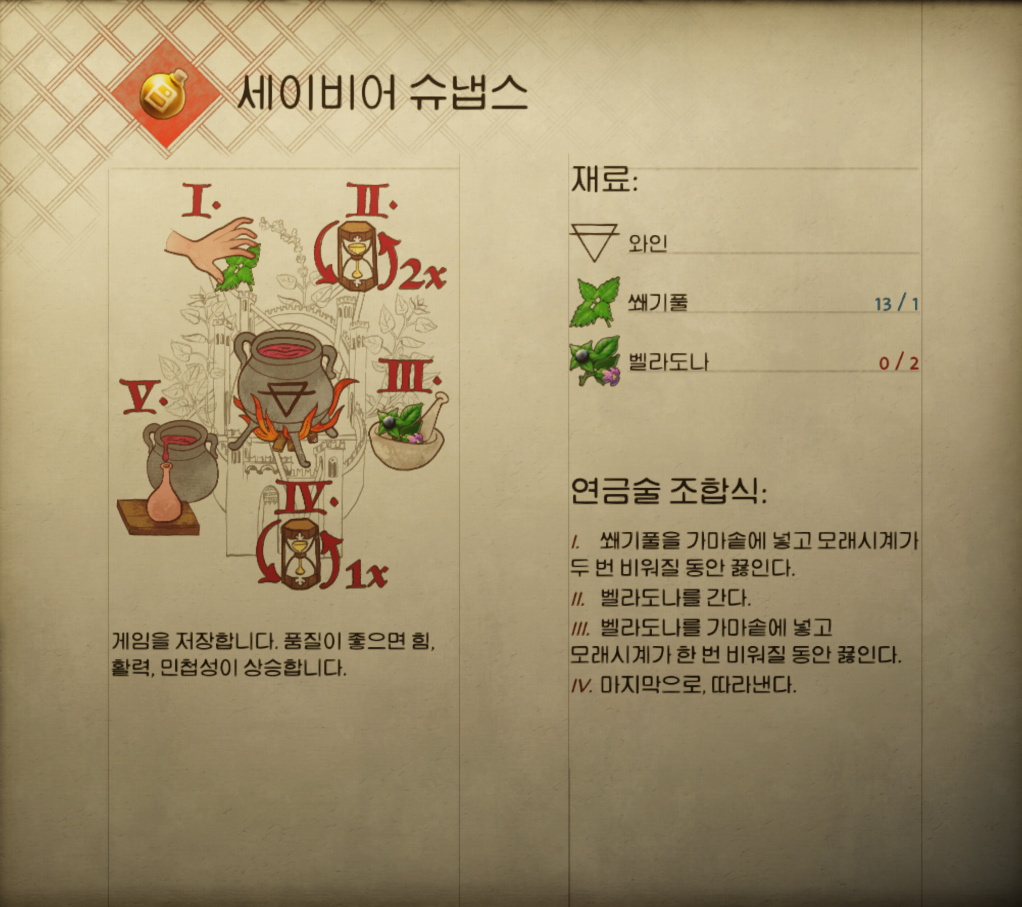 연금술 레시피는 종류가 많기 때문에 컨트롤+f 키로 검색하시면 편합니다.