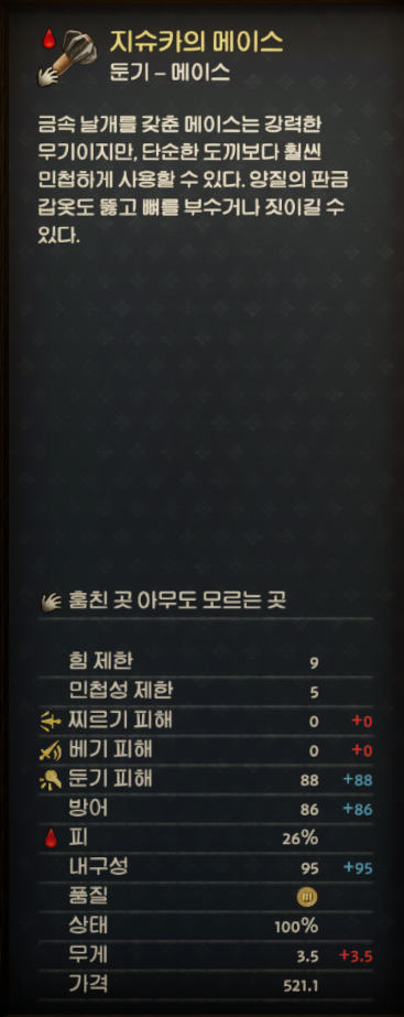만약 지슈카가 기절했었다면 지슈카의 메이스를 얻을 수 있습니다.