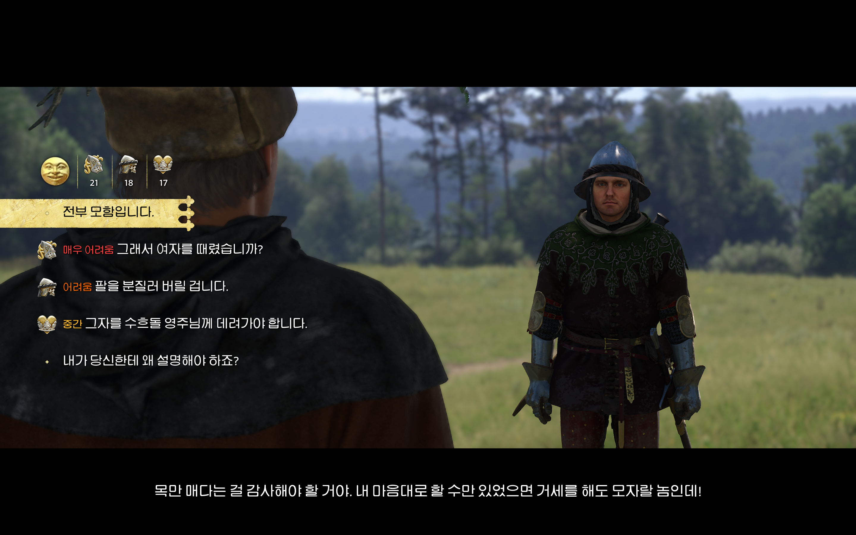설득을 하거나 흥정을 할 수 있지만 징수관 퀘스트도 깰겸 그냥 싸우시는걸 추천드립니다.
